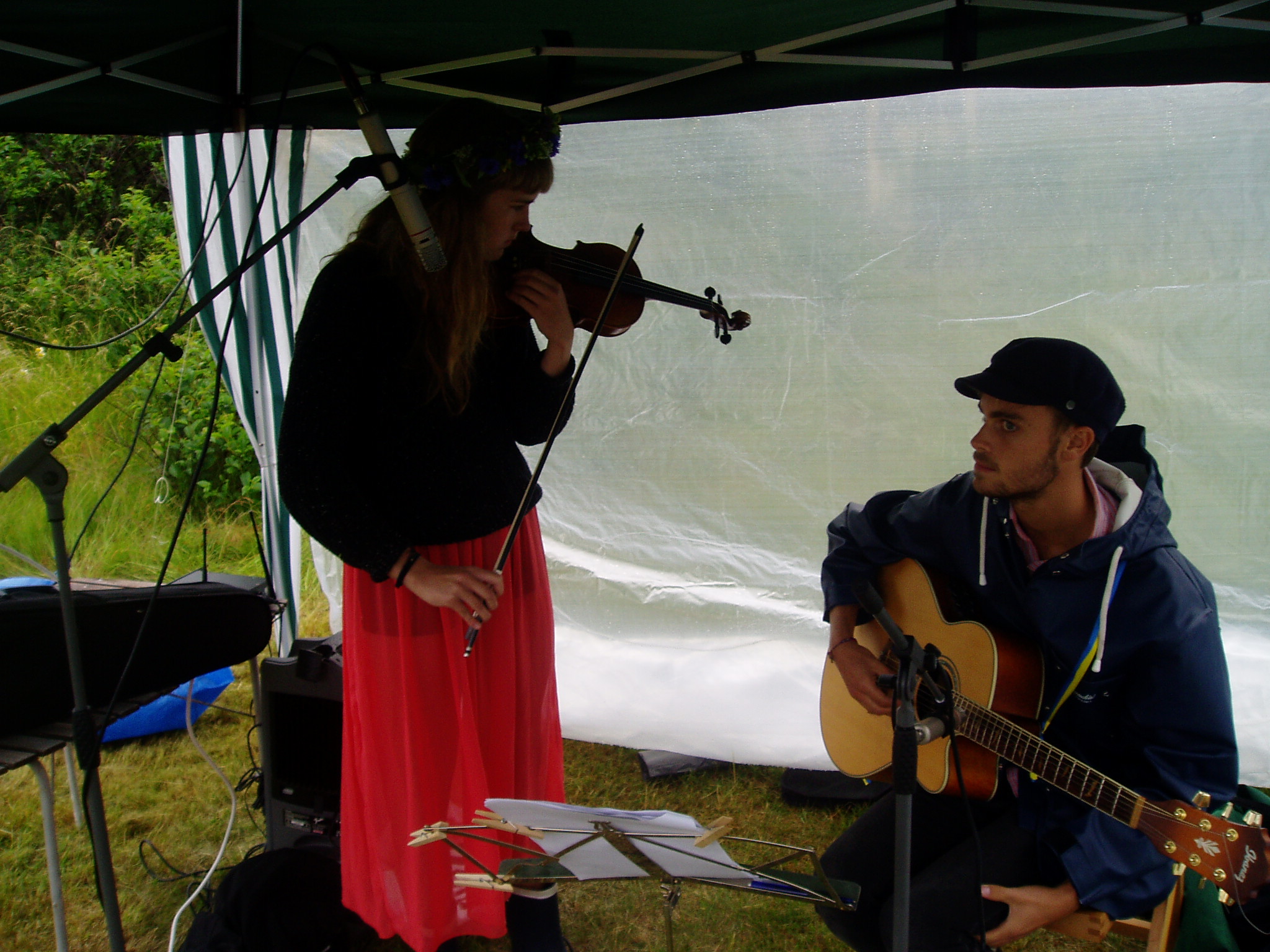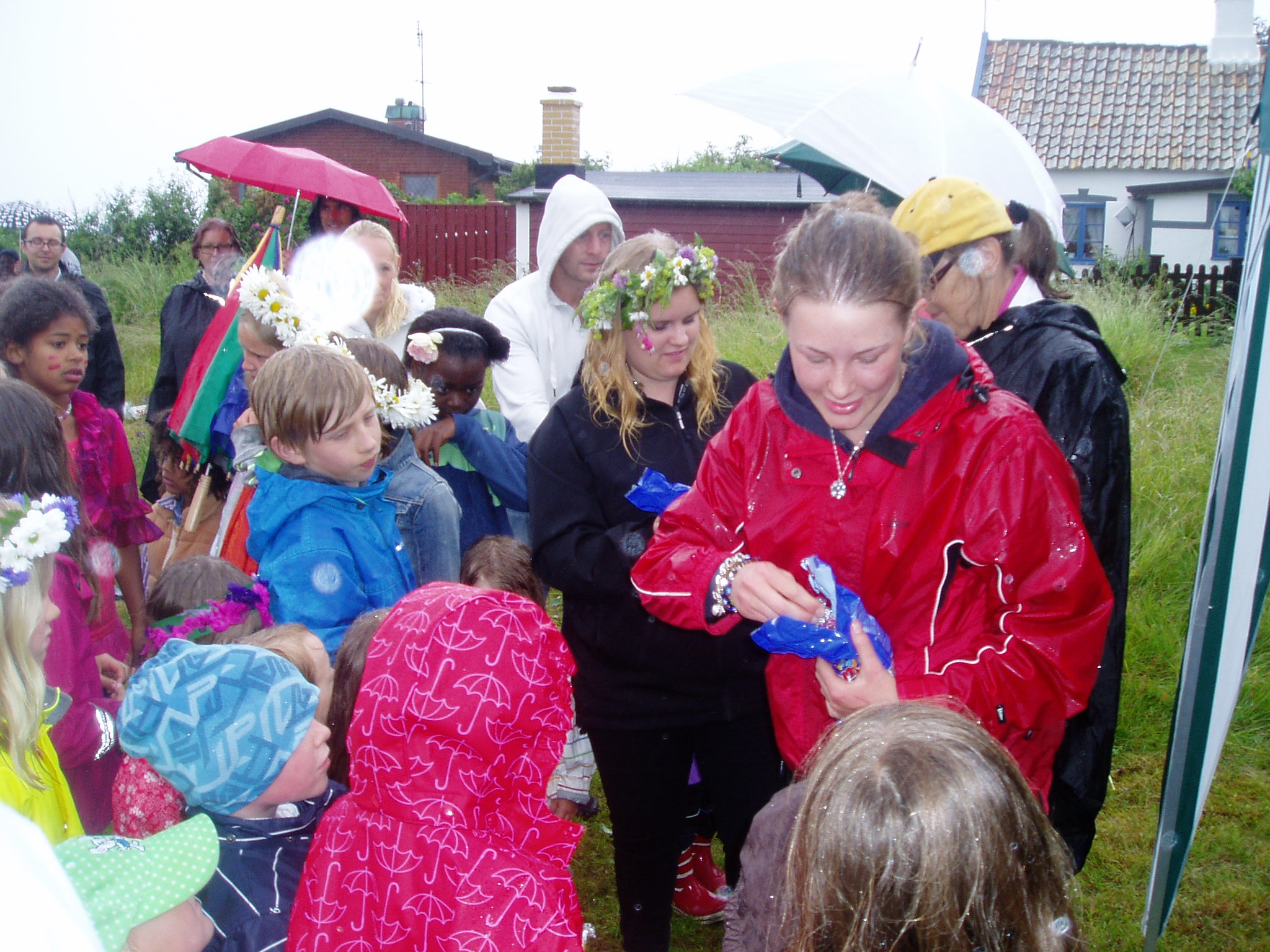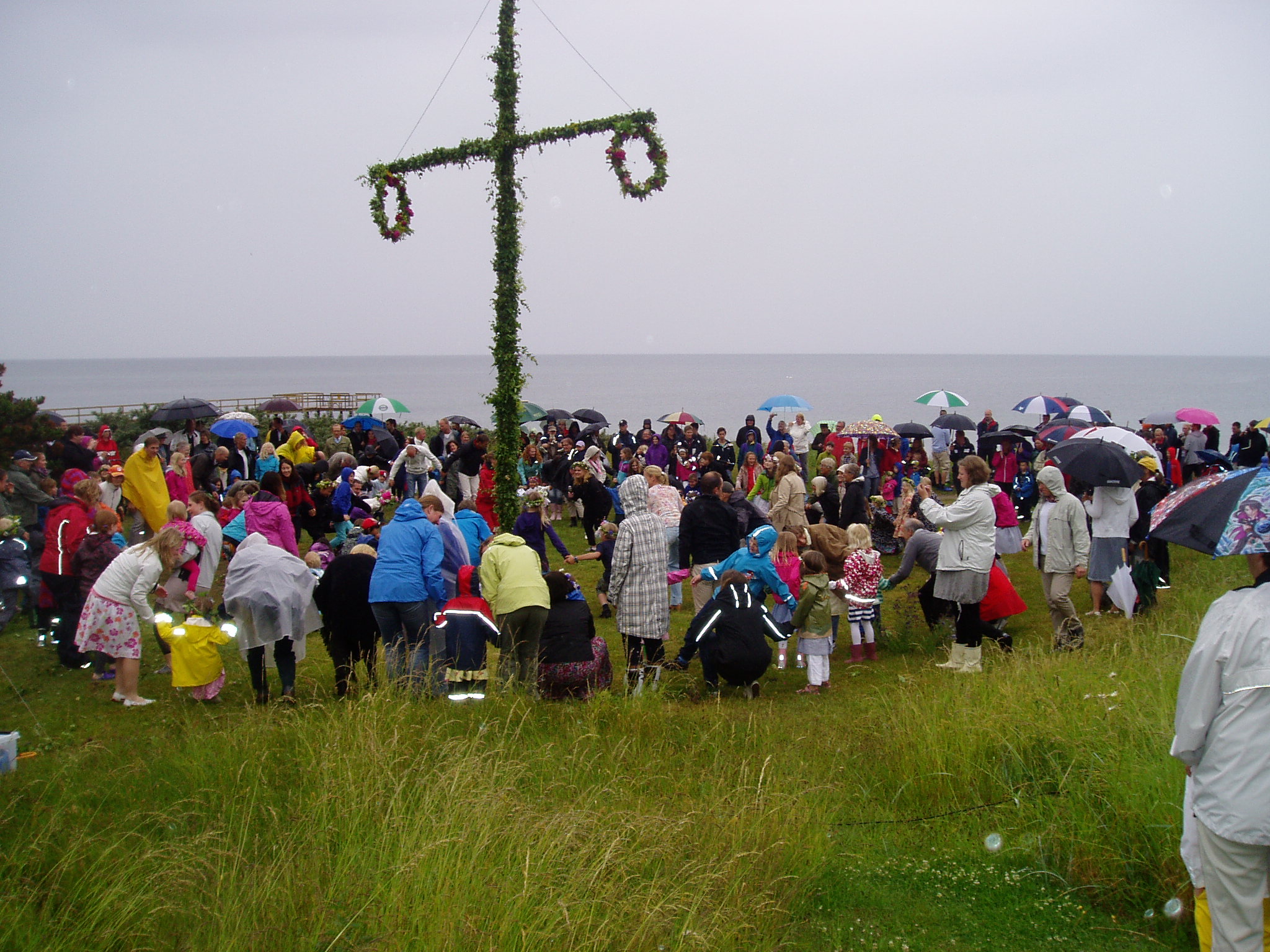 Trots att regnet vräkte ner var det många tappra som kom och dansade kring byns midsommarstång. Dock lyste picknickkorgarna med sin frånvaro…